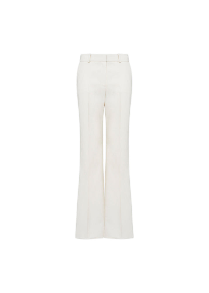 The David trousers sit comfortably true to the waist for a cinched, form-flattering shape. The thigh is relaxed and the leg is straight, with a slight kick-flare to elongate the leg.