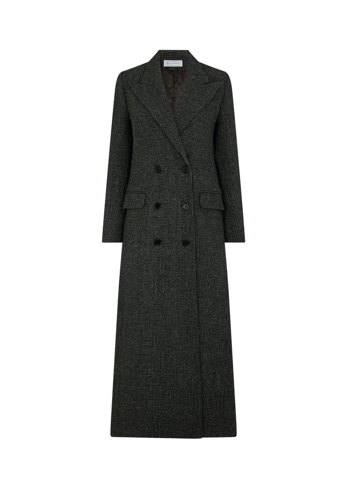 The Bianca Jacket, reimagined. Inspired by the timeless trench coat and elegance of London dressing, this maxi-length wool coat with double breasted button fastening will see you comfortably through the seasons.