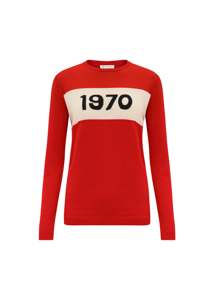 The red 1970 Jumper offers a slim fit, designed to sit snug against the body and sitting just at the hips. Features a subtle ribbed neck, hem and cuffs.