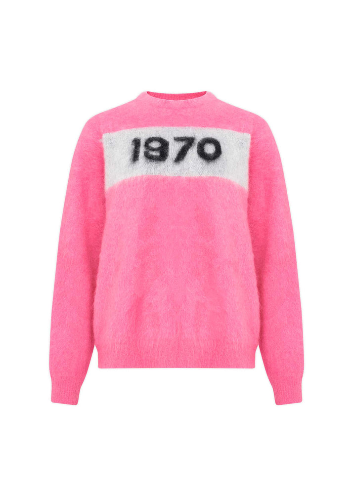 The iconic 1970 gets the mohair treatment. The Pink 1970 Mohair Jumper oversized, boxy fit designed to sit comfortably away from the body. Spun in a luxury Italian mohair with 1970 intarsia, with subtly ribbed neck hem and cuffs for maximum comfort.