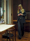 The Bianca Jacket is our double breasted offering, creating more of a looser fit on the body. The length of the jacket is long, but the shoulders are gently shaped down to the chest to create a more sensitive and female fit. Due to being double breasted, the Bianca jacket can feel oversized and slightly more statement. This style works well with the Bianca trouser for a more exaggerated look or our slimmer fit trousers for the everyday.
