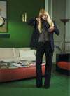 At Bella Freud, our tailoring is designed to be transitional and easily take you from day to night, offering up complete versatility with each piece. A velvet jacket can be styled down with a classic white tee and trainers, or offer sophisticated glamour when paired with the matching trousers and your favourite heels. We design pieces to be worn, cherished and become wardrobe staples. Our trousers come in a standard length to allow for easy alterations to your desired length. When tailoring trousers, it is always advisable to take your preferred shoe with you to ensure the perfect fit. All trouser styles are cut with a straight waistband to offer a more flattering fit and we use the same cuts and construction for each style across different seasons, meaning your favourite shape will remain your go to for years to come. Across both jackets and trousers, it is important to note that different fabrications do have an impact on the overall fit, for example velvet has less natural mechanical stretch compared to wool cavalry twill styles. With velvet specifically, if you fall in between sizes we would advise to size up to allow for more movement in the fits.