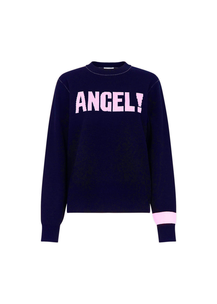 An angel is a beautiful idea, the thought of them gathered together like guardians fills me with courage. The exclamation mark makes this seem like a Punk rock angel; Punk was a big deal in my teenagehood. Sweatshirt fit jumper with ribbed neck, hem and cuffs. Slightly cropped with boxy fit, you may wish to take a size up from your regular size.