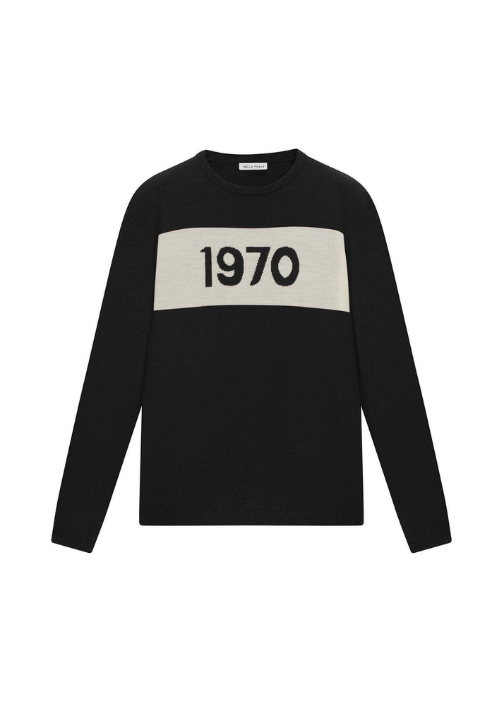 While messing around on my photocopier I spied the date 1970 printed in the corner of the catalogue I was leafing through. This date looked good. I kept blowing it up, then cut it out and pinned the strip of white paper onto my black jumper. It had a charm, like a cool record cover. I had read somewhere in a Coco Chanel biography, that she advised women to invest in a string of pearls because it reflected a luminescent glow onto the face. What I was looking at made me think of the early New York punk scene, and Patti Smith. This white stripe with the black writing is like a Punk string of pearls. Merino wool crew neck jumper with '1970' intarsia. Ribbed neck, hem and cuffs. Model is size Medium wearing a size Medium, height 6"1.5.100% Merino Wool